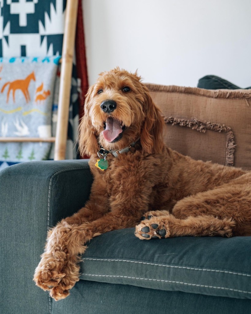 Theo is our gentleman and gentle soul. Born 01/2021. He has a therapy dog personality and he is always nearby. He is there when we’re folding laundry, watching movies, and working in the office. He is the sire for both our Goldendoodles and Red Standard Poodles. He is a gift to our family. We can’t imagine life without him as he’s a peaceful and quirky presence in our homw. Weight 55lbs and height 25″ at the shoulders.
