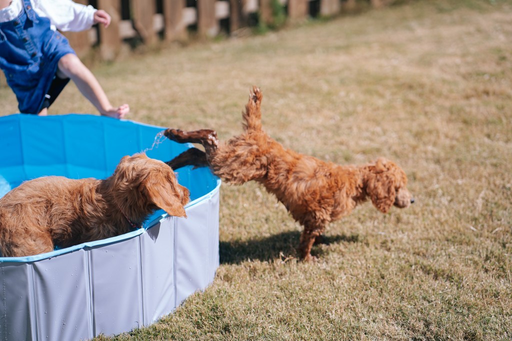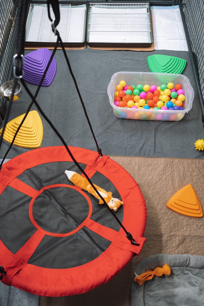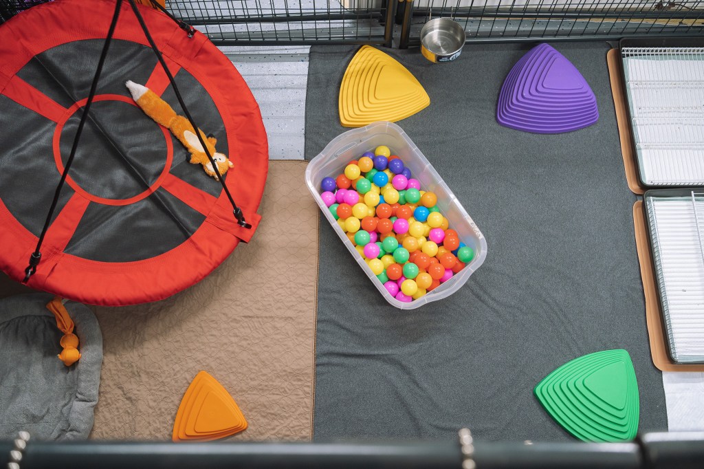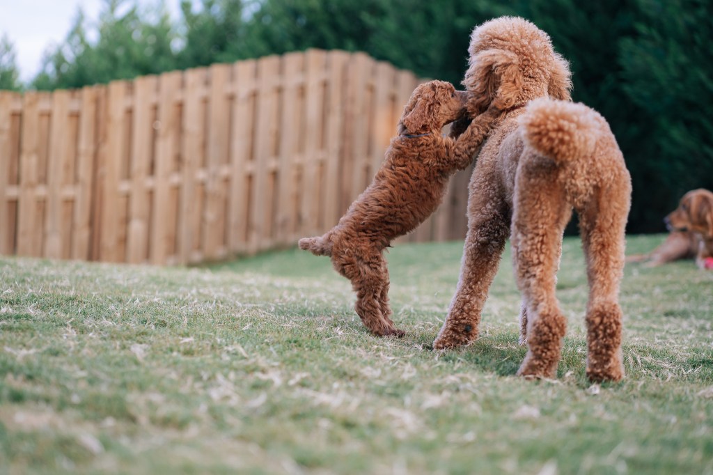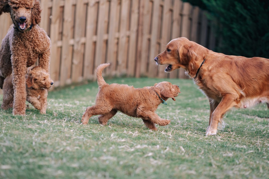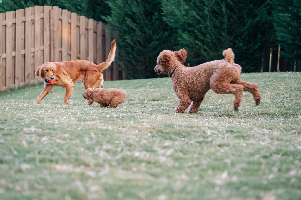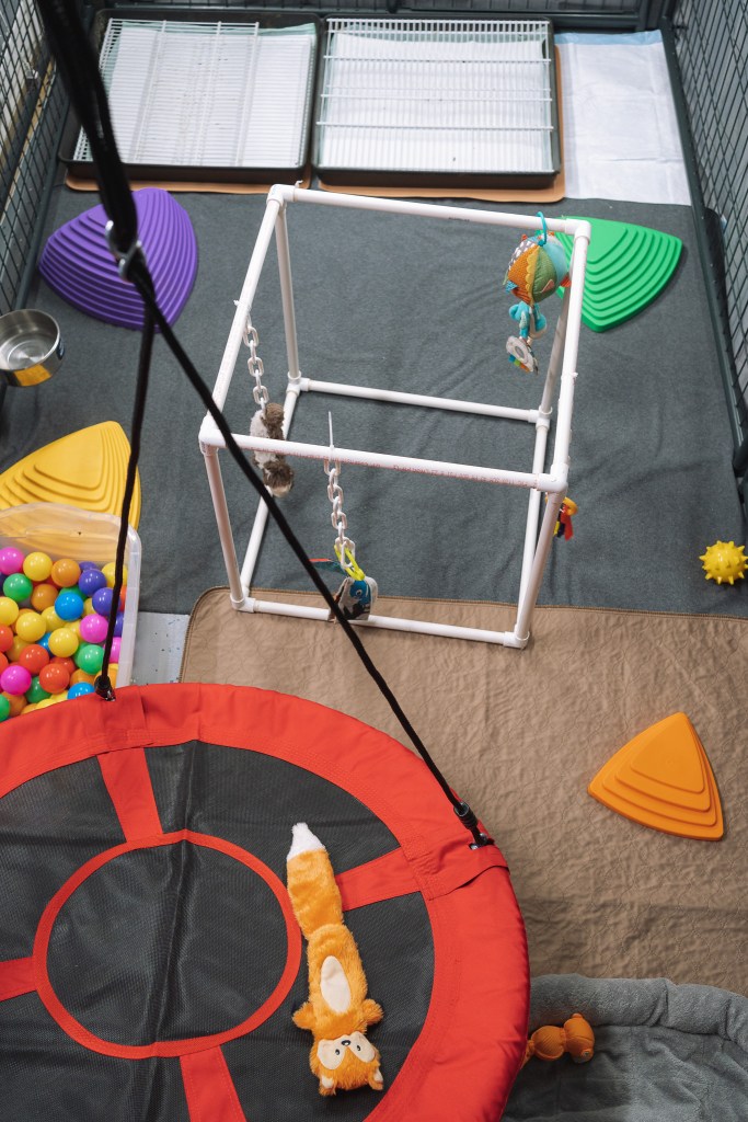 We raise our puppies in our home in our “puppy nursery” which is across from our kitchen. We have eyes on them at all times. They have a safe and controlled environment that is set up for their success and development and changes week after week so that they are getting their emotional, physical, and social needs met. We also have a beautiful fenced in yard where they get to explore and play with our older dogs as well as practice going potty outside.