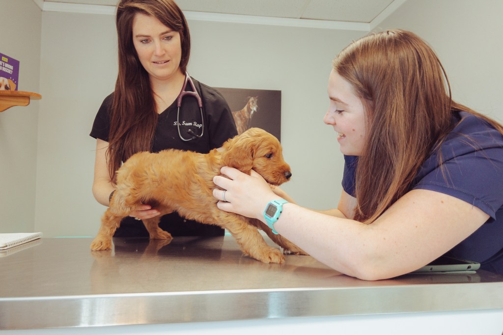 BIG WEEK! Vet visit with first shots and health clearance. Friends of ours perform the Vohard aptitude test on our puppies, we continue with potty training introduction and crate training introduction. Puppy picking order begins.