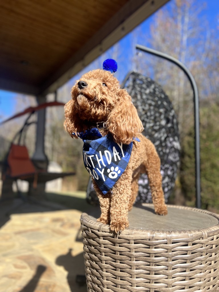 Nala comes from an incredible breeder and family line. She has passed EXTENSIVE health testing and will haver her second litter this February or March 2026. She is a fantastic family dog! Her puppies are expected to be will be 55-70lbs as adults, red shaggy/wavy fur, light to non-shedding, and 50% Red Standard Poodle and 50% Golden Retriever.